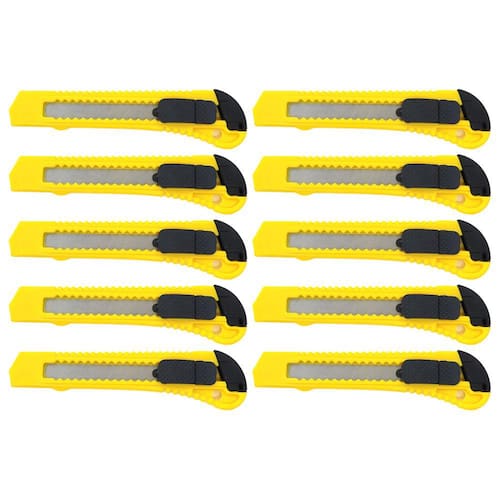 Kit 10 Estilete De Corte Multiuso 18 mm Tradestar Estilete de Corte Multiuso 18mm Tradestar O Estilete de Corte Multiuso 18mm Tradestar é uma ferramenta essencial para suas tarefas de corte. Com a marca Tradestar, você pode contar com qualidade e desempenho excepcionais. Este estilete possui uma lâmina afiada de 18mm que permite cortes precisos e limpos em uma variedade de materiais. Seja papel, papelão, tecido ou plástico, o Estilete de Corte Tradestar proporciona resultados profissionais. Com um design ergonômico, o cabo oferece conforto e aderência durante o uso, reduzindo a fadiga das mãos e proporcionando maior controle sobre o corte. Além disso, possui um mecanismo de trava seguro para garantir sua segurança quando não estiver em uso. Seja para trabalhos de artesanato, escritório, marcenaria ou projetos DIY, o Estilete de Corte Multiuso 18mm Tradestar é a escolha certa.