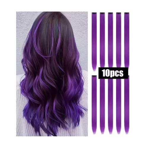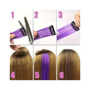 Conjunto de dez peças de extensões de cabelo, perucas luminosas coloridas, absorvem luz durante o dia e brilham à noite, adequadas para festivais de música eletrônica e boates noturnas, carnaval e eventos de moda em geral. O conjunto com 10 unidades de extensões de cabelo sintético luminoso possuem clip e possuem comprimento de 50,8 cm, um design de clip fácil de usar, textura suave e macia, composição de fibra de alta temperatura. Material de cabelo: Fibra de alta temperatura Género: Mulheres Ondulação: Cabelo liso Comprimento: 50,8cm (cores disponíveis: branco, azul, verde, rosa e roxo) OBS: o conjunto de dez peças de extensões multicoloridas tem o comprimento de 55cm.