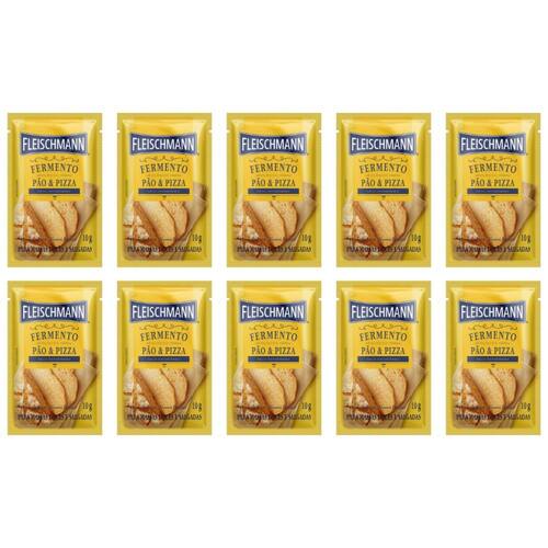 Kit com 10 Fermento Biológico Seco Instantâneo Para Massas Salgadas Pão E Pizza - Fleischmann