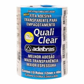 Kit 10 Fita Adesiva Transparente de Empacotar 12x40 Adelbras