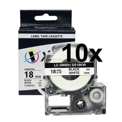 Kit 10 Fitas Compatível Epson LC5WBN Branca Letra Preta 18mm