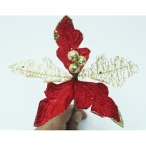 O cabo flexível e resistente permite uma integração harmoniosa em arranjos, guirlandas ou árvores, tornando-a versátil para qualquer cenário natalino. Esta flor não é apenas um adorno; ela é uma expressão de festividade e refinamento, garantindo que sua decoração capture o verdadeiro espírito e a elegância do Natal. Um toque de charme que promete ser o destaque em suas comemorações!