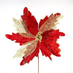 Kit 10 Flor Decoração Natal Artificial Brilho Vermelha 29cm -