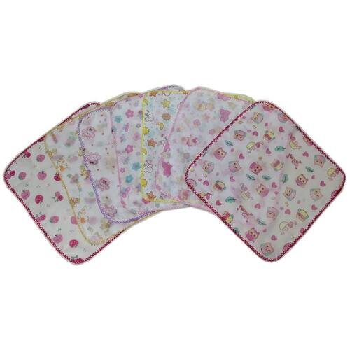 Especificações: Quantidade: 10 fraldinhas de boca estampadas Tamanho: 33x33 cm prático e compacto Composição: Tecido duplo 100% algodão duas camadas para maior resistência e absorção Acabamento: Crochê feito à máquina Principais Benefícios: