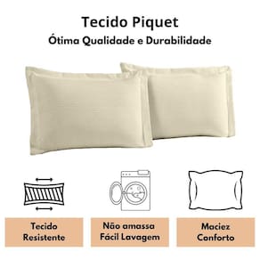 É uma opção elegante e clássica para decorar a cama. O Piquet é um tecido de algodão com textura em alto relevo, confere um visual sofisticado, traz a maciez e o conforto, além de um toque de beleza e elegância na decoração do ambiente.