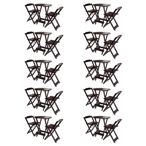 Kit 10 Jogos De Mesa Bistrô De Madeira Com 2 Cadeiras Dobravel Ideal Para Bar E Restaurante Tabaco é ideal para bares, restaurantes, estabelecimentos, áreas de lazer e tambem para sua casa. Feito em madeira maciça, tornando resistentes e duráveis. Seu design permite que seja encaixado em qualquer ambiente, trazendo um toque a mais para seu estabelecimento. Além de sua durabilidade, o que lhe trará conforto para servir seus clientes. Por ser dobrável torna-se mais fácil guardar, manusear e limpar o produto. Atenção: EVITE USAR PRODUTOS ABRASIVOS E QUíMICOS PARA LIMPEZA DO PRODUTO, aconselha-se o uso de pano umedecido para melhor conservação; mantenha o produto fora de chuva e sol constantes. OBS: MDF ULTRA MESA Cor: Tabaco Modelo: Bistrô Dobravel Dimensões: Altura 99cm | Largura 55cm | Profundidade 55cm CADEIRA Cor: Tabaco Modelo: Bistrô Dobravel Dimensões: Altura 100cm | Largura 38cm | Profundidade 37cm