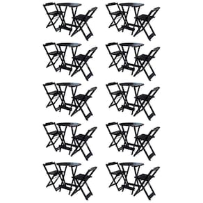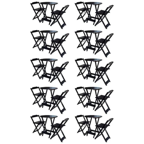 Kit 10 Jogos De Mesa Bistrô De Madeira Com 2 Cadeiras Dobravel Preto - Preto