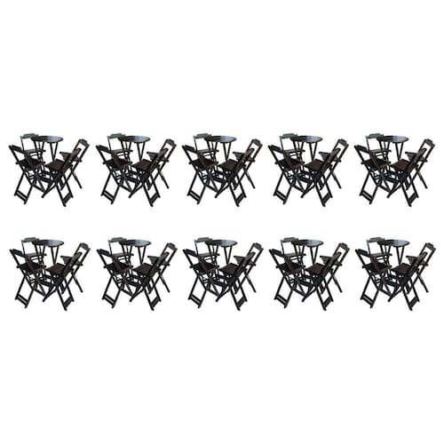 Kit 10 Jogos De Mesa Bistrô De Madeira Com 4 Cadeiras Dobravel Ideal Para Bar E Restaurante Tabaco é ideal para bares, restaurantes, estabelecimentos, áreas de lazer e tambem para sua casa. Feito em madeira maciça, tornando resistentes e duráveis. Seu design permite que seja encaixado em qualquer ambiente, trazendo um toque a mais para seu estabelecimento. Além de sua durabilidade, o que lhe trará conforto para servir seus clientes. Por ser dobrável torna-se mais fácil guardar, manusear e limpar o produto. Atenção: EVITE USAR PRODUTOS ABRASIVOS E QUíMICOS PARA LIMPEZA DO PRODUTO, aconselha-se o uso de pano umedecido para melhor conservação; mantenha o produto fora de chuva e sol constantes. OBS: MDF ULTRA MESA Cor: Tabaco Modelo: Bistrô Dobravel Dimensões: Altura 99cm | Largura 55cm | Profundidade 55cm CADEIRA Cor: Tabaco Modelo: Bistrô Dobravel Dimensões: Altura 100cm | Largura 38cm | Profundidade 37cm