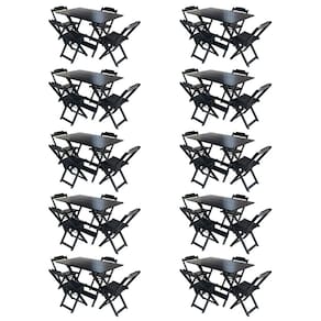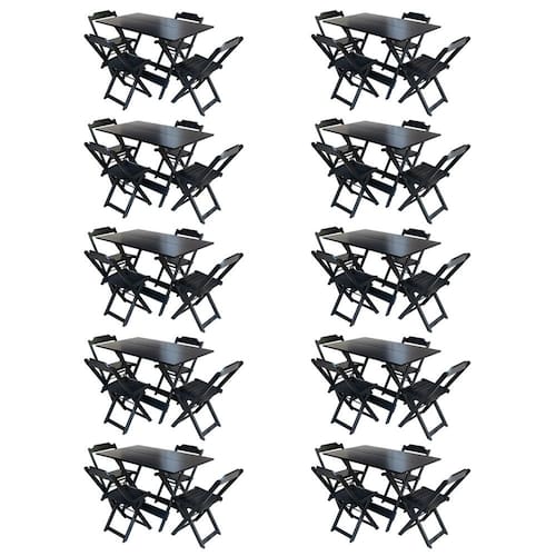 Kit 10 Jogos De Mesa Com 4 Cadeiras De Madeira Dobravel 120x70 Para Bar E Restaurante - Preto - Preto