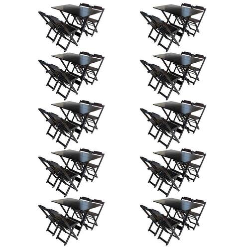 Kit 10 Jogos De Mesa Com 4 Cadeiras De Madeira Dobravel 120X70 - Tabaco - Marrom