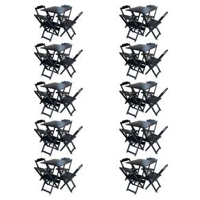 Kit 10 Jogos De Mesa Com 4 Cadeiras De Madeira Dobravel 70X70 Móveis Guara - Preto