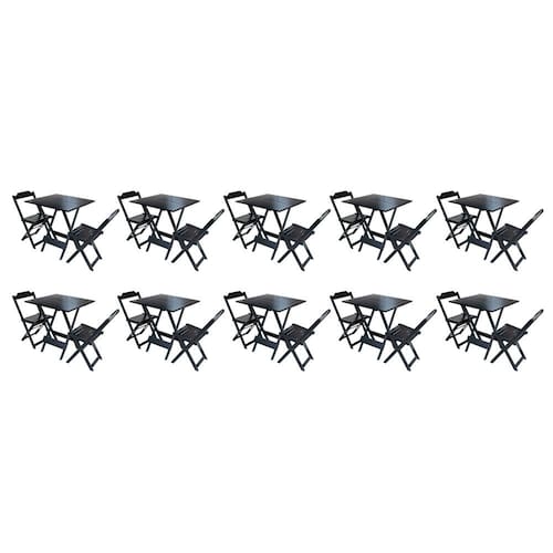 Kit 10 Jogos de Mesa Dobravel com 2 Cadeiras de Madeira 70x70 Ideal para Bar e Restaurante - Preto - Preto