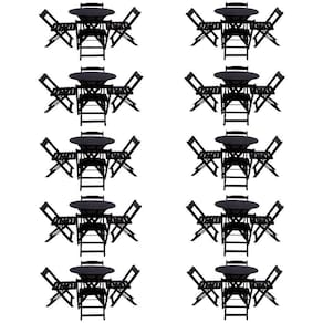 Kit 10 Jogos De Mesa Dobravel Com 4 Cadeiras Tampo Redondo 70x70 Preto - Cor: Preto