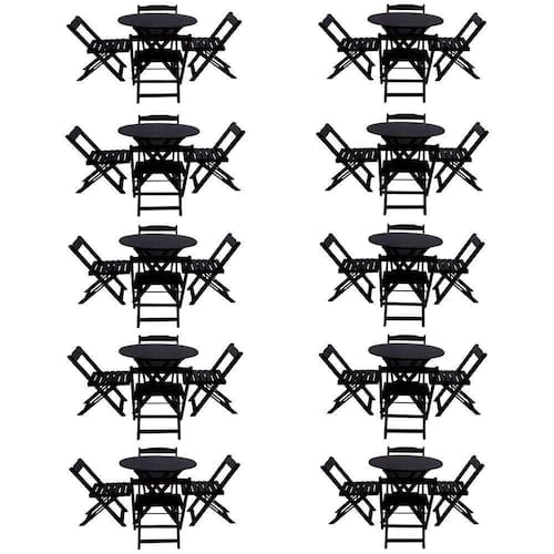 Kit 10 Jogos De Mesa Dobravel Com 4 Cadeiras Tampo Redondo 70X70 Preto - Preto