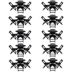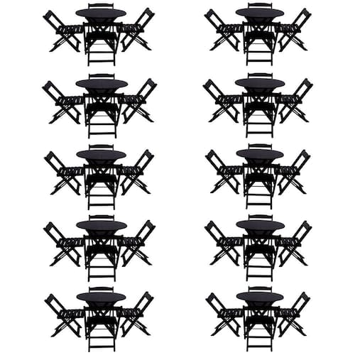 Kit 10 Jogos de Mesa Dobravel com 4 Cadeiras Tampo Redondo 70x70 Preto - Preto