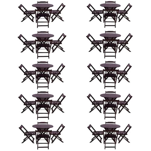 Kit 10 Jogos De Mesa Dobravel Com 4 Cadeiras Tampo Redondo 70x70 Tabaco é ideal para bares, restaurantes, estabelecimentos, áreas de lazer e tambem para sua casa. Feito em madeira maciça, tornando resistentes e duráveis. Seu design permite que seja encaixado em qualquer ambiente, trazendo um toque a mais para seu estabelecimento. Além de sua durabilidade, o que lhe trará conforto para servir seus clientes. Por ser dobrável torna-se mais fácil guardar, manusear e limpar o produto. Atenção: EVITE USAR PRODUTOS ABRASIVOS E QUíMICOS PARA LIMPEZA DO PRODUTO, aconselha-se o uso de pano umedecido para melhor conservação; mantenha o produto fora de chuva e sol constantes MESA Cor: Tabaco Modelo: Dobravel Dimensões: Altura 76cm | Largura 70cm | Profundidade 70cm CADEIRA Cor: Tabaco Modelo: Dobravel Dimensões: Altura 80cm | Largura 45cm | Profundidade 42cm