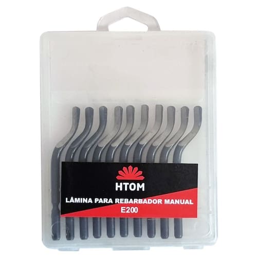 Kit 10 Lâminas E200 para Rebarbador Escariador Aço Rápido - Marca: HTOM - Referência: HTOM-42519 - - 10 Lâminas modelo E200 - Lâminas de Aço Rápido HSS - Compatível com escariadores de qualquer marca que utilize lâminas da série E - Indicado para rebarbação em aço, plástico, madeira, alumínio, metal não ferroso, aço inox, Etc... - Oferece rebarbação fácil e sem esforço através de sua lâmina - Lâminas de altíssima qualidade que garantem maior tempo de vida útil, a praticidade no dia a dia.