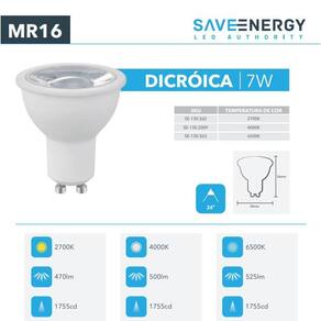Kit contendo: 10 - lâmpada led mr16 7w 2700k gu10 - save energy Estas lâmpadas, são produzidas obedecendo altíssimos controles de qualidade e tem 2 anos de tem um ótimo custo benefício pois aliam um preço acessível à uma excelente qualidade, se tratando de durabilidade e emissão de luz. Especificações: Temperatura de cor: 2700k quente Eficiência luminosa: 67lm/w Ocp: ul Potência: 7w Fluxo luminoso: 470lm Ângulo: 24º Intens. Luminosa: 1755cd Irc: 80 Dimerizavel: não Nível de proteção: ip40 Base: gu10 Peso produto: 50g Tensão: bivolt Equiv. Incandescente: 50w Produto certificado pelo inmetro: 002 995/2020 Ean: 7905632020989