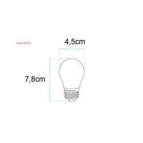 Indice de proteção: IP20 Não Dimerizável; ÂNGULO DE ABERTURA: 300º Indicação: Uso Interno Potênica: 2w Cor da lâmpada: Transparete com filamentos Azuis Emissão de luz: Azul Peso: 16 gramas Dimensão: Largura 45mm x Altura 78mm Material: vidro. Formato do bulbo: g45 Características de funcionamento: Temperatura ambiente: -5c a 40c. Tensão de entrada: 100v a 240v. Bivolt Fator de potência: 0,4. Baixo consumo de energia. Lâmpadas isentas de certificação inmetro por emitir luz colorida, conforme portaria inmetro nº 389/2014