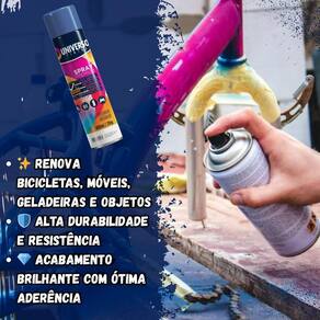 Tinta Spray 400ml Azul Escuro Uso Geral em Aço Ferro Couro Gesso Cerâmica A Tinta Spray 400ml Azul Escuro Uso Geral é a solução prática para renovar superfícies de metal, gesso, couro e cerâmica. Ideal para dar vida nova a bicicletas, móveis, eletrodomésticos e objetos em geral, garantindo um acabamento moderno e duradouro. Com fórmula de alta qualidade, oferece excelente aderência e acabamento Brilhante, além de resistência superior contra desgastes do dia a dia. Sua cobertura uniforme realça os detalhes e proporciona um resultado em poucas camadas. Prática e fácil de aplicar, a tinta spray seca ao toque em apenas 15 minutos, permitindo agilidade nos trabalhos e economia de tempo. O rendimento de até 2 m por demão garante maior aproveitamento do produto e ótimo custo-benefício. Diferenciais: Acabamento Brilhante com ótima aderência Alta durabilidade e resistência em ambientes internos e externos Secagem rápida e aplicação prática com cobertura uniforme Especificações TÉCNICAS: Volume: 400ml Rendimento: até 2 m por demão Superfícies indicadas: metal, gesso, couro e cerâmica Secagem: toque em 15 minutos Acabamento: Brilhante Recomendação: uso de primer para melhor desempenho Itens INCLUSOS: 10 Tintas Spray 400ml Azul Escuro Uso Geral Marca: Não Informado Ean: 7894141437770