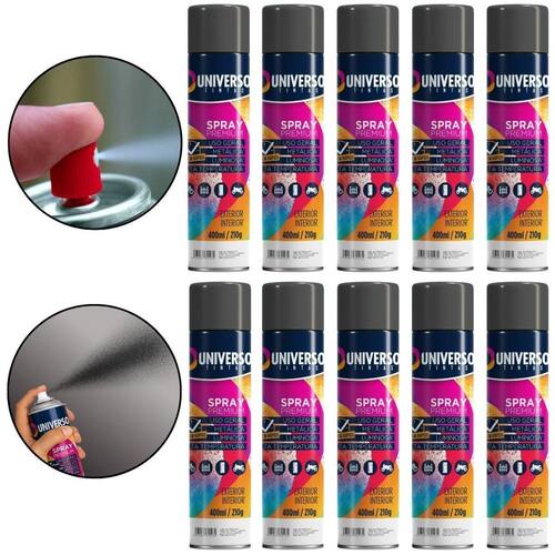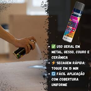 Tinta Spray 400ml Preto Brilhante Uso Geral em Aço Ferro Couro Gesso Cerâmica A Tinta Spray 400ml Preto Brilhante Uso Geral é a solução prática para renovar superfícies de metal, gesso, couro e cerâmica. Ideal para dar vida nova a bicicletas, móveis, eletrodomésticos e objetos em geral, garantindo um acabamento moderno e duradouro. Com fórmula de alta qualidade, oferece excelente aderência e acabamento Brilhante, além de resistência superior contra desgastes do dia a dia. Sua cobertura uniforme realça os detalhes e proporciona um resultado em poucas camadas. Prática e fácil de aplicar, a tinta spray seca ao toque em apenas 15 minutos, permitindo agilidade nos trabalhos e economia de tempo. O rendimento de até 2 m por demão garante maior aproveitamento do produto e ótimo custo-benefício. Diferenciais: Acabamento Brilhante com ótima aderência Alta durabilidade e resistência em ambientes internos e externos Secagem rápida e aplicação prática com cobertura uniforme Especificações TÉCNICAS: Volume: 400ml Rendimento: até 2 m por demão Superfícies indicadas: metal, gesso, couro e cerâmica Secagem: toque em 15 minutos Acabamento: Brilhante Recomendação: uso de primer para melhor desempenho Itens INCLUSOS: 10 Tintas Spray 400ml Preto Brilhante Uso Geral Marca: Não Informado