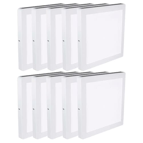 Potência: 18W. Temperatura: 6.500K. Lúmens: 1.040. Voltagem Bivolt: 127-220V. Dimensões: 210 x 210 x 24. Contém 10 Unidades Neste Kit.