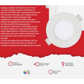 As luminárias Slim trazem sofisticação com um toque minimalista a espaços diversos. A tecnologia LED possibilita iluminação eficiente dos ambientes com economia de energia. Para maior praticidade na hora da instalação, aposte na Slim embutir para dar mais destaque à luminária e garantir um toque especial a tetos de laje ou alvenaria. Caso seu objetivo seja compor uma iluminação mais discreta, opte pela Slim Embutir, que vai contribuir para deixar ambientes com tetos com forros de PVC, madeira ou gesso mais harmônicos e amplos, além de ser opção perfeita para cozinhas e banheiros, cômodos que exigem limpeza constante.DetalhesVIDA ÚTIL 25.000hGRAU DE PROTEÇÃO IP20ÂNGULO DE ABERTURA 110ºIRC 70MULTITENSÃO 100-240VBenefíciosDispensa o uso de reatores.Tecnologia LED com driver externo, que acompanha o produto.Sistema óptico eficiente e difusor translúcido, evitando o ofuscamento.Acendimento e reacendimento instantâneo.Trabalha bem em baixas temperaturas.Orientações especiaisUtilizar apenas em ambientes internos ou externos abrigados.Temperatura ambiente recomendada: -15°C a + 40°C.Não permite dimerização.Evitar impactos mecânicosConteúdo: 10 LUMINÁRIAS *Garantia: 03 meses contra defeitos de fabricação.*Objetos de decoração das fotos não estão inclusos.*As cores podem variar conforme monitor/smartphone utilizado para a visualização do anúncio.