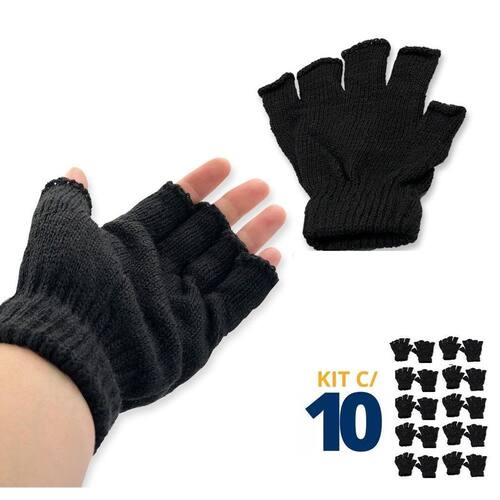 Kit 10 Luvas Sem Dedos Preto Lisa Inverno Frio Tamanho Único