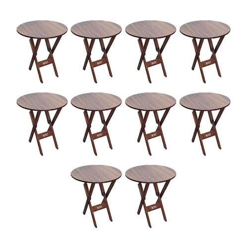 Kit 10 Mesas Dobráveis De Madeira Redonda 70cm Imbuia - Tarimatã