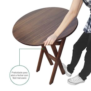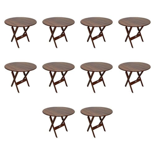 Kit 10 Mesas Dobráveis De Madeira Redonda 90cm Imbuia - Cor: Preto