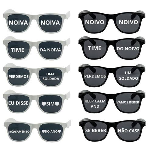 Deixe sua festa ainda mais especial e divertida com esses óculos super estilosos e descolados. Armação de ótima qualidade Tamanho universal Unissexobs: as frases estão escritas da seguinte maneira: Noivo-noivo-noiva-noiva-time da-noiva-time do-noivo-perdemos-uma soldada-perdemos-um soldado-keep calm and- vamos beber-eu disse-sim-se beber- não case-casamento-do anonão será possivel fazer alteração das frases e não personalizamosfrases são enviada para o cliente colargarantia do vendedor: 30 dias