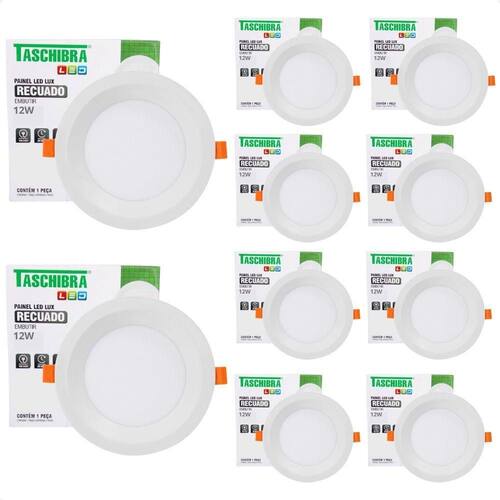 Kit 10 Painel de Led Redondo Embutir Recuado 12W Bivolt Taschibra 4000K Neutro
