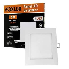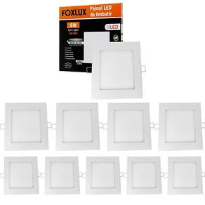 Kit 10 Painel LED 6W Downlight Bivolt 6500K Quad Emb Foxlux