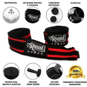 Dez pares de bandagem em poliester com elasticidade - spank - 3m cada -ideal para treinos de boxe, kickboxing, muaythai e mma - possui 3 metros de comprimento, possibilitando a bandagem completa da mão - feita de poliester de alta qualidade - possui fechamento em tiras aderentes - largura: 5cm - embalagem com 1 par Qual a importância do uso da bandagem A bandagem é um acessório importante para amarrar os ossos da mão, evitando torções, micro fraturas e dores decorrentes dos treinos. Com uma bandagem bem feita, sua mão ficará mais firme, resultando em golpes mais efetivos, possibilitando fazer treinos pesados todos os dias. Marca: Não Informado