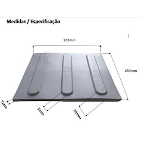 - Material PVC - Borracha Flexível macio e confortável ao pisar. - Medidas: 255 x 255 x 10 mm. - Aplicação: Argamassa - Não acompanha a argamassa.