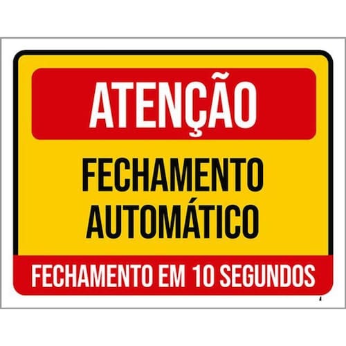 Kit 10 Placa Fechamento 10 Segundos Automático 36x46 Placas de sinalizaço fabricadas com poliestireno de alto impacto PSAI de 2mm e impressão ultravioleta.