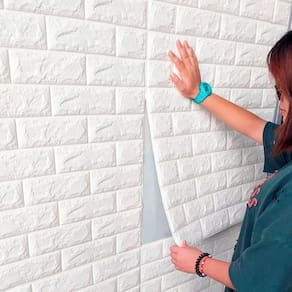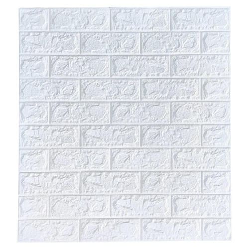 Kit 10 Placa Painel 3D Tijolo Branco Auto Adesivo 70 X 77 CmPlacas de 70cm x 77cm, 0,54m cada, totalizando 5,4 mCom 6mm de espessuraO painel 3D Autoadesivo BR Floor é uma excelente opção para decorar e revestir os mais diversos ambientes como quarto, sala, escritório, corredor, lavabo e até mesmo banheiro exceto a área do box de forma barata, rápida e sem sujeira. Ideal para quem procura produtos DIY, o painel é auto adesivo e pode ser instalado facilmente sem a necessidade de um profissional.InstalaçãoO painel 3 d auto adesivo pode ser aplicado em paredes lisas ou gesso com pintura, azulejo, mdf, madeira lisa, fórmica, metal entre outros, desde que a superfície esteja lisa e sem qualquer imperfeição.Primeiramente realize a limpeza da superfície com pano úmido e detergente para retirar qualquer resíduo, sujeira ou oleosidade antes de iniciar a colagem.Comece a instalação soltando primeiro apenas o começo da película protetora do adesivo para posicionar a placa no local certo. Colado a parte superior, puxe o restante da película protetora e aplique uma leve pressão com as mãos para colar o painel na parede. veja o vídeo para entender a instalação Os recortes de acabamento podem ser feitos com tesoura ou estilete.LimpezaA limpeza pode ser feita com sabão neutro e um pano úmido. Não utilize objetos nem produtos abrasivos ou ácidos, pois podem danificar o produto. Marca: Br Floor