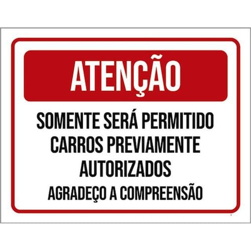 Kit 10 Placa Somente Permitidos Carros Autorizados 36x46 Placas de sinalizaço fabricadas com poliestireno de alto impacto PSAI de 2mm e impressão ultravioleta.