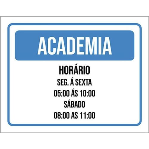 Kit 10 Placas Academia Horário Segunda Sexta Sábado 36x46 Placas de sinalizaço fabricadas com poliestireno de alto impacto PSAI de 2mm e impressão ultravioleta.