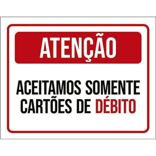 Kit 10 Placas Atenção Aceitamos Somente Cartões Débito 36x46 Placas de sinalizaço fabricadas com poliestireno de alto impacto PSAI de 2mm e impressão ultravioleta.