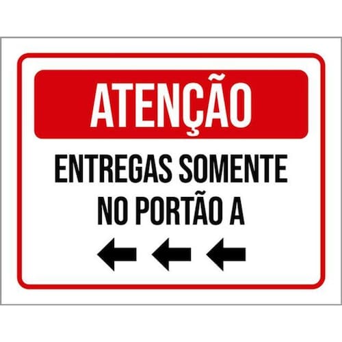 Kit 10 Placas Atenção Entregas Somente Portão 36x46 Placas de sinalizaço fabricadas com poliestireno de alto impacto PSAI de 2mm e impressão ultravioleta.