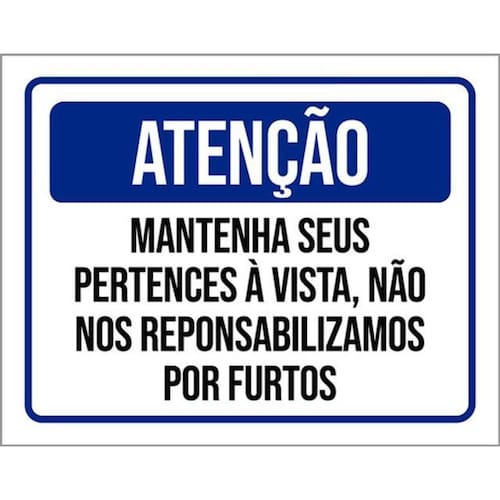 Kit 10 Placas Atenção Mantenha Seus Pertences Á Vista 36x46 Placas de sinalizaço fabricadas com poliestireno de alto impacto PSAI de 2mm e impressão ultravioleta.