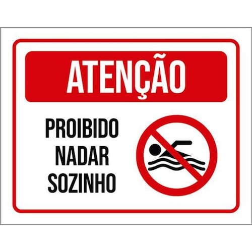 Kit 10 Placas Atenção Proibido Nadar Sozinho Placas de sinalizaço fabricadas com poliestireno de alto impacto PSAI de 2mm e impressão ultravioleta.