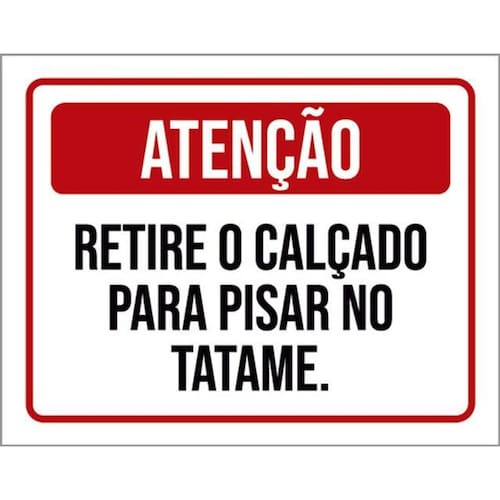 Kit 10 Placas Atenção Retira Calçado Para Pisar Tatame Placas de sinalizaço fabricadas com poliestireno de alto impacto PSAI de 2mm e impressão ultravioleta.