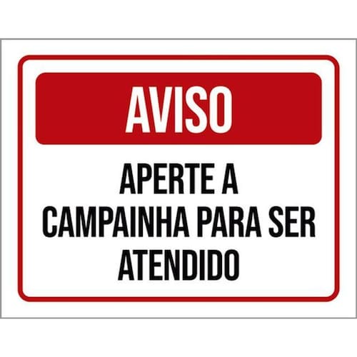 Kit 10 Placas Aviso Aperte Campainha Para Ser Atendido 36x46 Placas de sinalizaço fabricadas com poliestireno de alto impacto PSAI de 2mm e impressão ultravioleta.