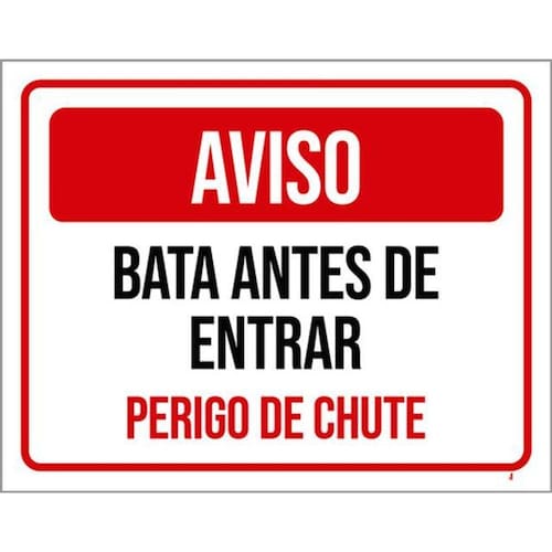 Kit 10 Placas Aviso Bata Antes Entrar Perigo De Chute Placas de sinalizaço fabricadas com poliestireno de alto impacto PSAI de 2mm e impressão ultravioleta.