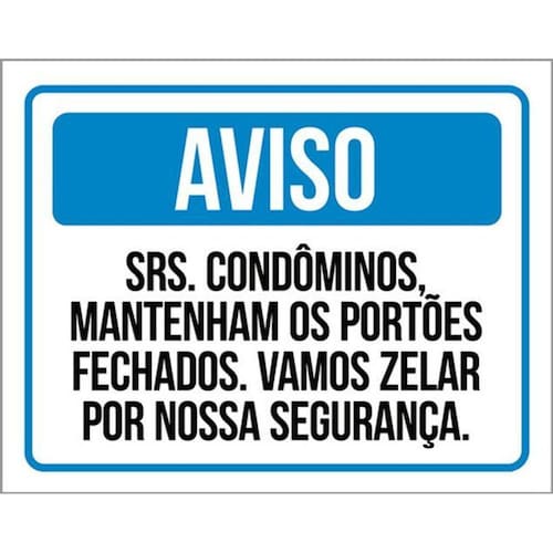 Kit 10 Placas Aviso Condôminos Portões Fechados Zelar 36x46 Placas de sinalizaço fabricadas com poliestireno de alto impacto PSAI de 2mm e impressão ultravioleta.