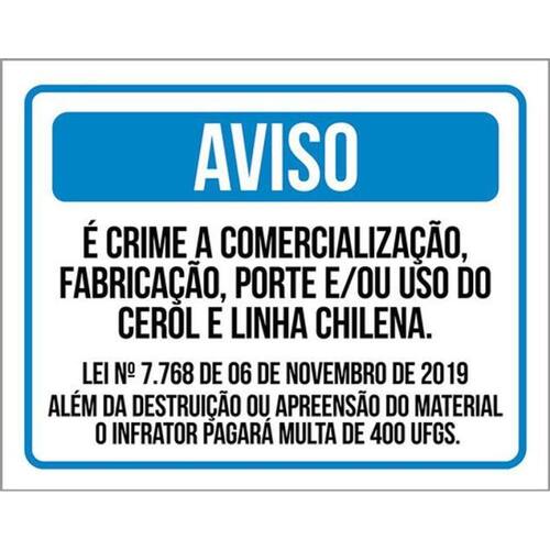 Kit 10 Placas Aviso Crime Comercialização Cerol Linha 36x46 - Informações do Produto: Placas decorativas fabricadas com poliestireno de alto impacto PSAI de 2mm e impressão ultravioleta. - Medidas: 36cm x 46cm - Fixação: Todas as placas possuem adesivo dupla face para aplicação em qualquer tipo de superfície lisa. de 12 meses e disponibilidade imediata. Marca: Não Informado