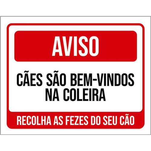 Kit 10 Placas Cães São Bem Vindos Na Coleira Recolha Fezes