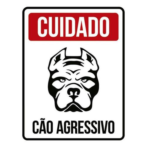 Kit 10 Placas Cuidado Cão Agressivo Vermelha 36x46